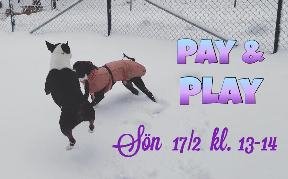 Första söndagen i varje månad är det Pay & Play kl.13-14 för hundar upp till 25 kg, och den tredje söndagen i varje månad samma tid är Pay & Play öppet för alla viktklasser. 😃