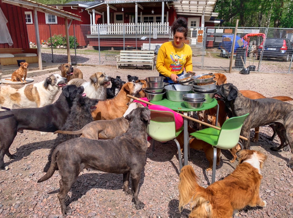 Tanken med en dokumentär är ju att visa saker som de är, inklusive ”the good, the bad and the ugly”. Jag känner redan att det är precis så det blir och det gläder mig! 😄 Vi gick exempelvis en härlig promenad med positiva och följsamma hundar, umgicks i solen med lugna, snälla och glada hundar, käkade middag med tysta, sovande hundar precis intill, och serverade mat till exalterade, burdusa och förvirrade hundar! 🤪 Samma hundar givetvis, men i helt olika sinnesstämningar. Jag och Amme samarbetar oftast vant och sansat, men ibland blir vi oense och käbblar. Igår handlade det om mitt missnöje med matningen och att jag märker att Amme haft för bråttom och kommer på mig själv med att jag låtit det slinka under radarn av bekvämlighetsskäl. 😴 Det är precis vad man behöver emellanåt; en hård men rättvis mental örfil för att skärpa sig! Amme och jag är bra på att jobba mot samma mål och respektera varandras skillnader, men vi är inte rädda för att ge varann välbehövlig kritik. Hans till mig kan vara att jag ger hundarna oförtjänt uppmärksamhet och min till honom kan handla om att han har för bråttom. 🌪 Med olika preferenser prioriterar man inte alltid likadant, och då skiftar resultatet. Igår var första gången på ett år som jag matade hundarna utomhus (vi gör det ibland på sommaren) och jag stördes av att några (för mig) viktiga matskålar saknades och att hundarna var stressade, dels över omständigheterna med nytt folk och nya rutiner och vibbarna som medföljer, men också över att Amme prioriterar att det ska gå fort framför att det ska vara sansat (han har tagit matningen den sista tiden). Vi löste det och så var det inte mer med det, men det påminde mig om att det är dags att återuppta matningen! 😃👍