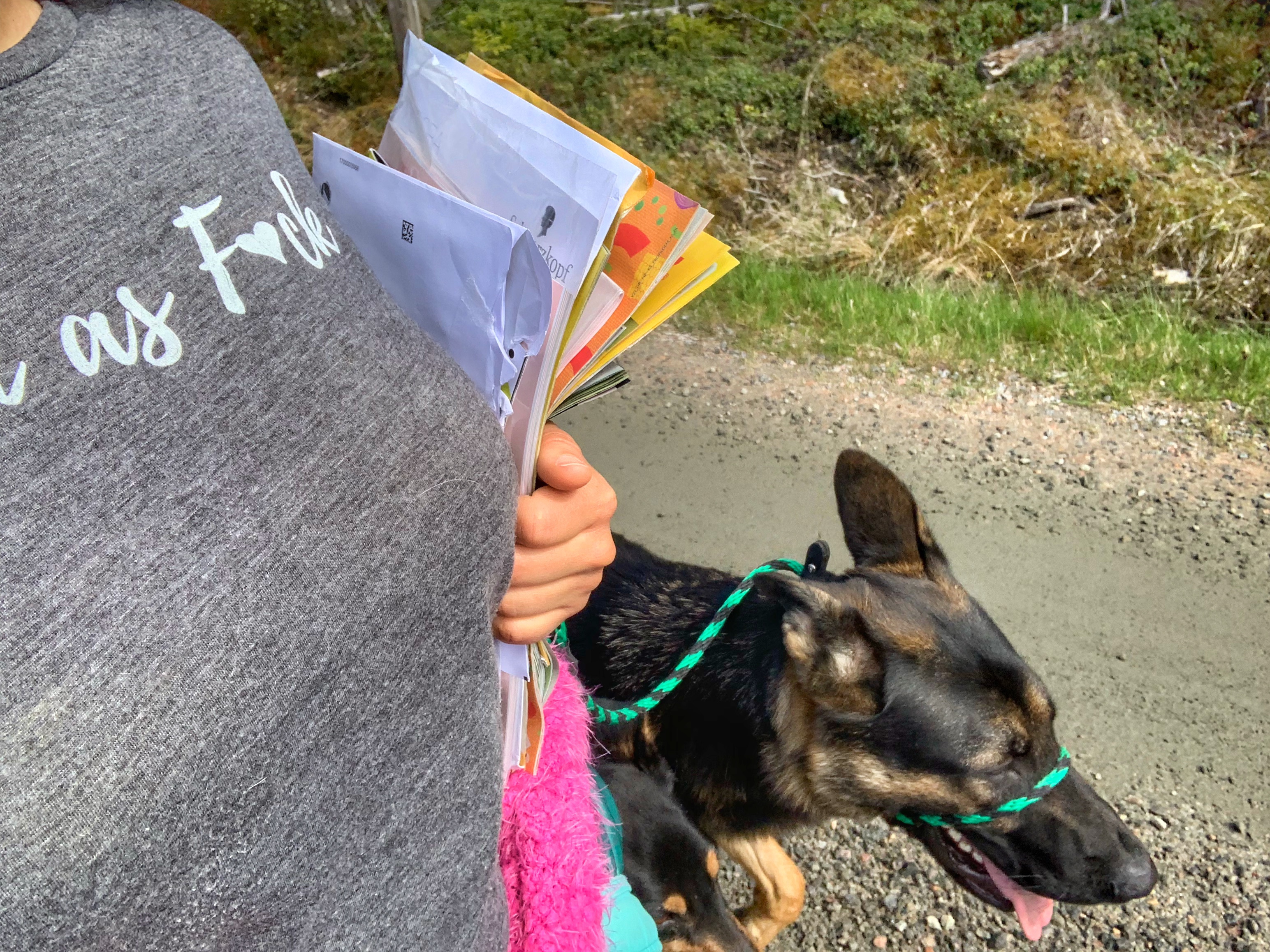 Idag har vi trampat måååånga steg med våra tre timmar ute på vift. 👟🐾 Vädret var alldeles lagom och hundarna var go’a och glada. ⛅️👅 Vi hämtade posten på väg hem och Braveheart fick träna impulskontroll när vi gick förbi en skällande hund som han inte fick lov att engagera sig i, vilket han klarade med lite vägledning. 📬🐕 Det märks att det har gjort honom gott att assistera oss i arbetet med andras hundar. Så sent som igår gjorde han en värdefull insats på jobbet och imponerade stort. 🌟👏 Vänner har han gott om nu och det värmer i hjärtat att se att ansträngningarna lönar sig. ❤️