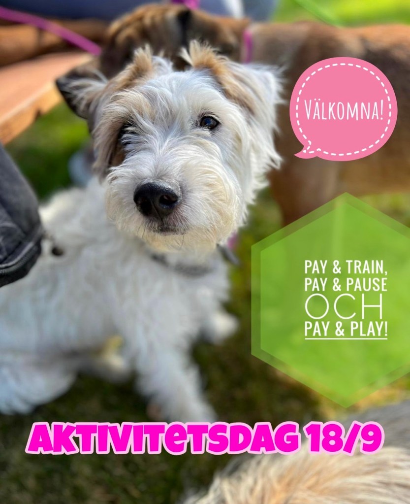 🔹 Sist ut är Pay & Play. Då får hundarna mingla i en kontrollerad miljö och underhålla eller öva på sina sociala färdigheter. 🐾 Även här får man med sig användbara råd för positiv utveckling, utöver själva aktiviteten. 👌 Superintressant! Vi har möjlighet att vara inomhus.